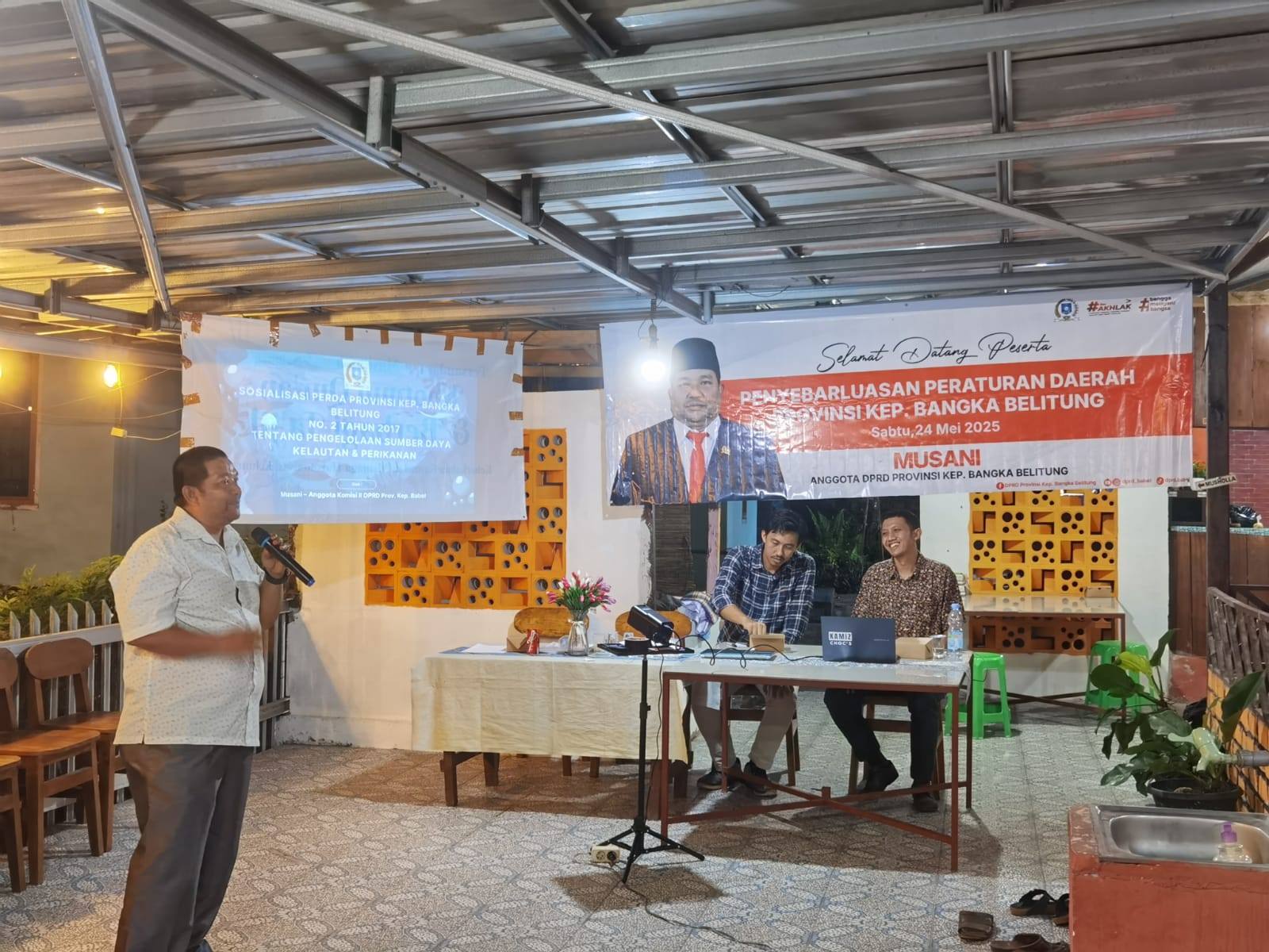 Hal inilah yang mendorong anggota DPRD Provinsi Kepulauan Bangka Belitung (Babel) Musani mengambil materi Peraturan Daerah (Perda) No 2 Tahun 2017 tentang Pengelolaan Sumber Daya Kelautan dan Perikanan dalam kegiatan Penyebarluasan Perda Sabtu malam (24/05) bertempat di Lesehan Hanif, kelurahan Toboali, Kabupaten Bangka Selatan.